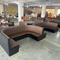 Juego de restaurante para banquetes Asientos de cuero PU de esquina, cabina con marco de madera, juego de restaurante de cabina de sofá de negocios